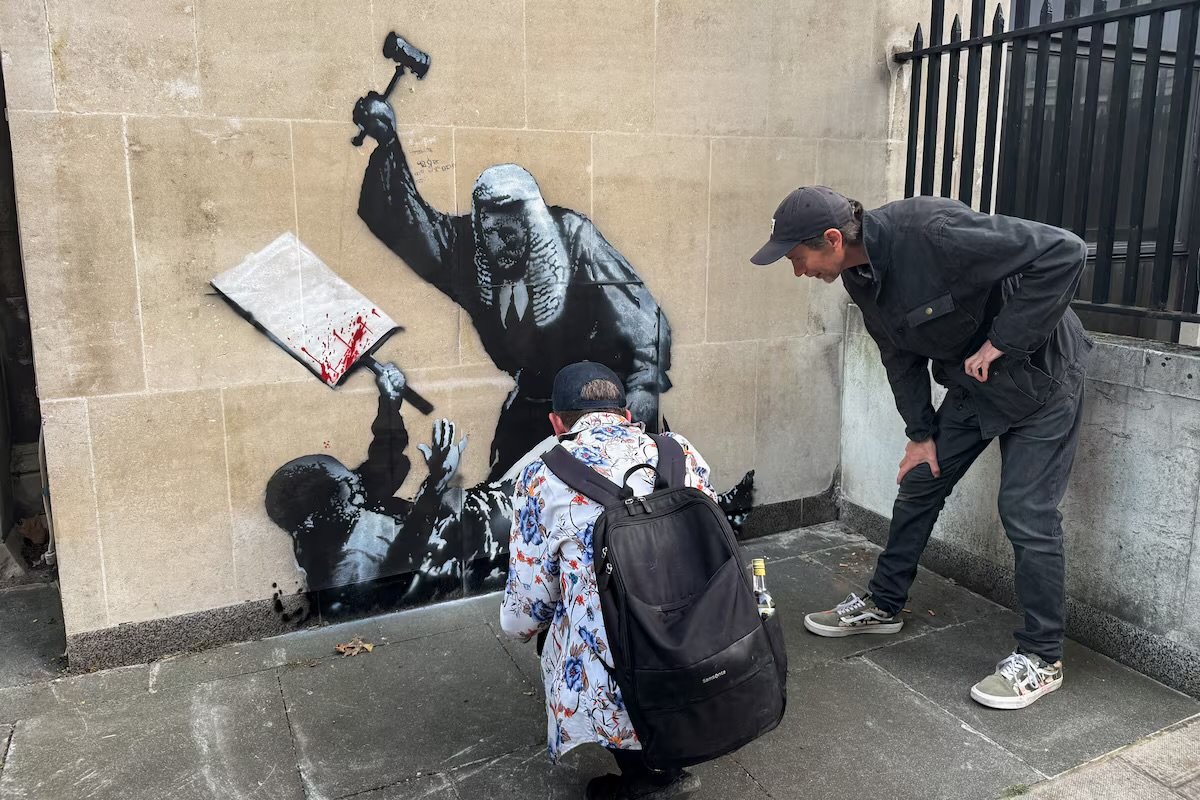 Londra’nın merkezinde, Kraliyet Adalet Sarayı’nın dış cephesinde 7 Eylül 2025 gecesi ortaya çıkan yeni bir mural, sokak sanatı ile adalet tartışmalarını yeniden gündeme taşıdı. Eser, sanatçı Banksy tarafından Instagram’da “Royal Courts of Justice. London.” notuyla paylaşılarak doğrulandı.
