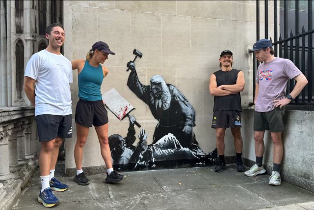 Kraliyet Adalet Sarayı duvarına gizemli sanatçı Banksy tarafından yapılan mural, adalet sistemine sert bir eleştiri sundu. Ancak tarihi yapının korunması gerekçesiyle kısa süre içinde kapatıldı.